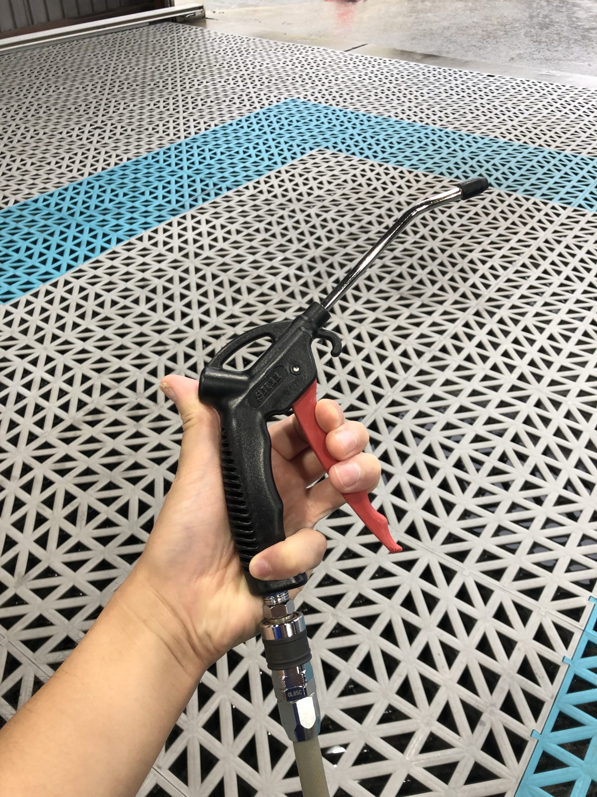 洗車後にいつまでたっても出てくる水!そんな時はエアガンの風で水を吹き飛ばします!